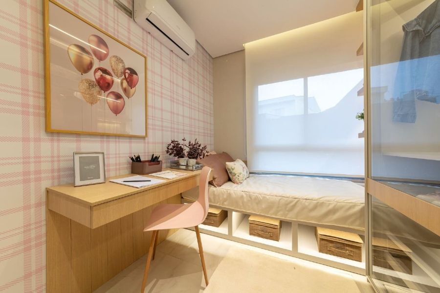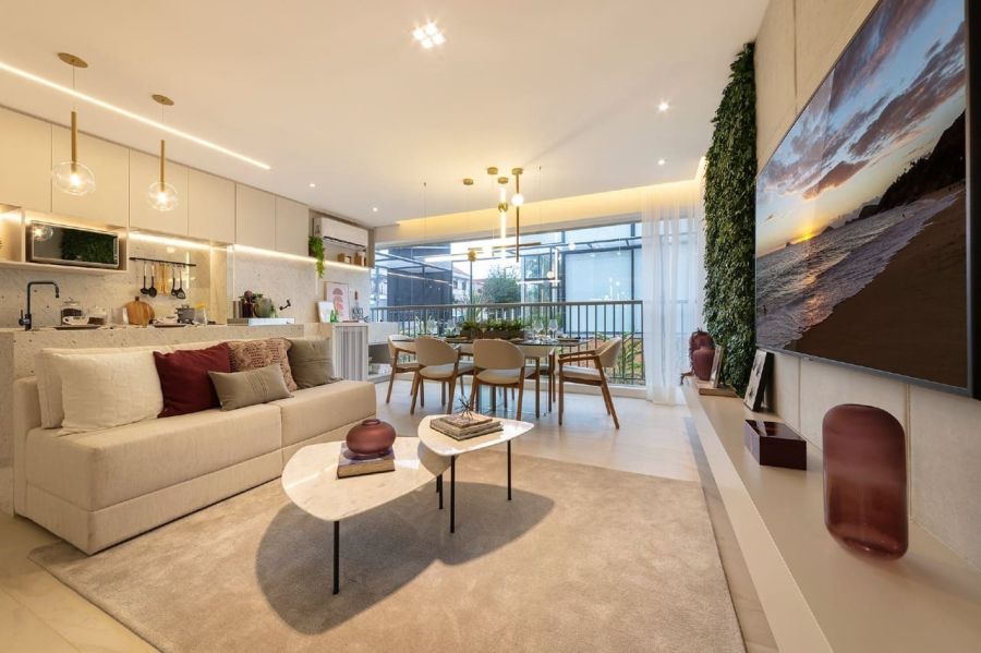 * Living amplo para dois ambientes (sala de estar e jantar);
